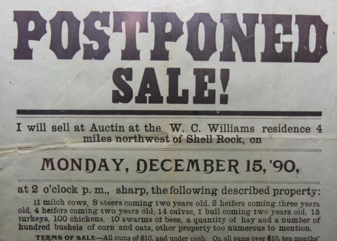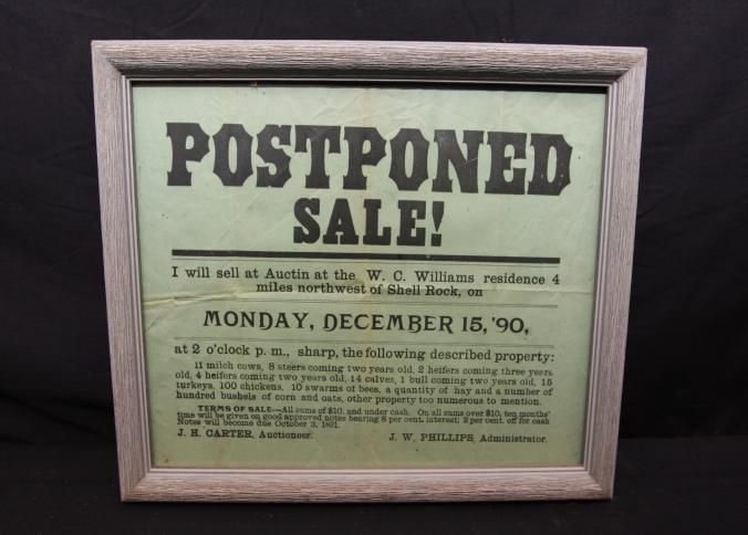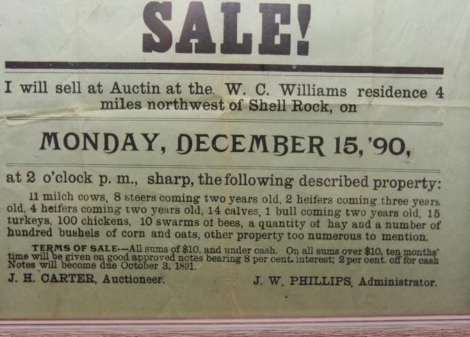 FR BROADSIDE, 1890, SHELL ROCK, IA. LIVESTOCK, J.H. CARTER, AUCTIONEER. 12" X 10"