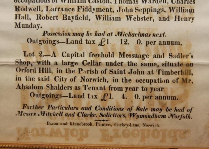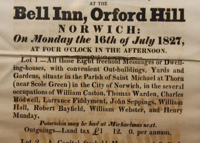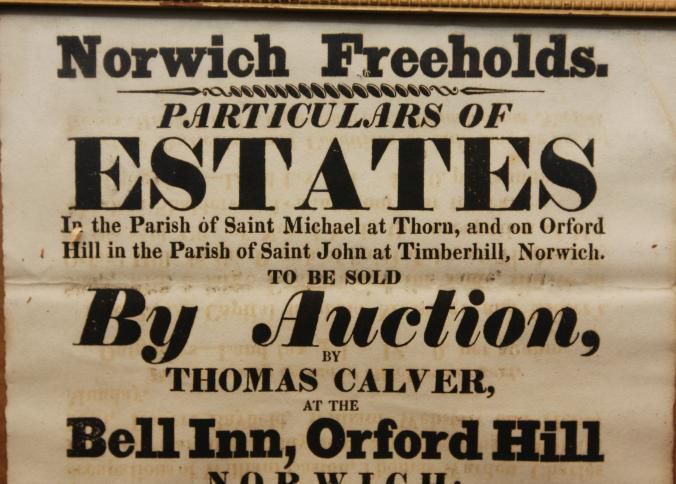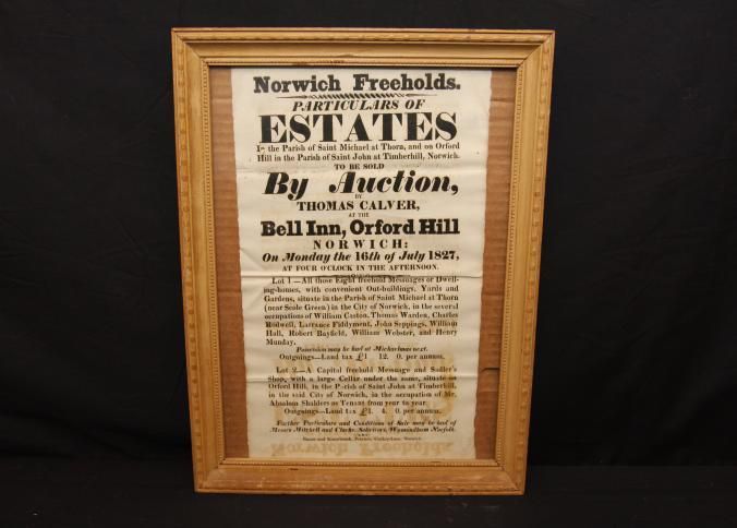 FR BROADSIDE, 1827, NORWICH. REAL ESTATE. NORWICH FREEHOLDS. THOMAS CALVER, AUCTIONEER. 11 1/2" X 14 1/2"Created By