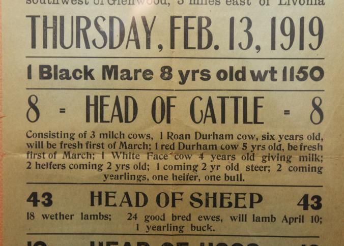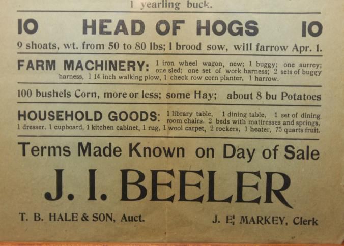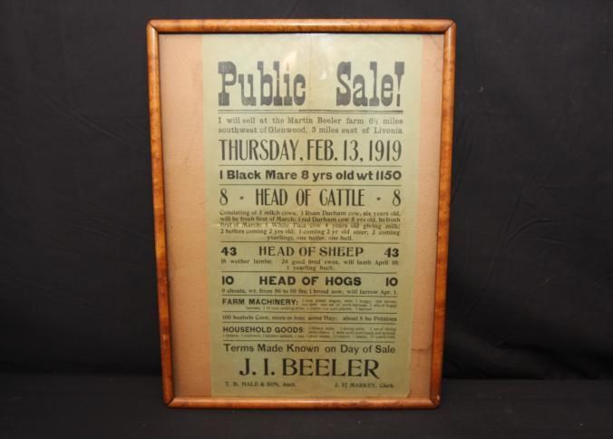 FR BROADSIDE, 1919, LIVESTOCK AND MACHINERY. T.B. HALE & SON, AUCTIONEERS. 12 1/2" X 15 1/2"