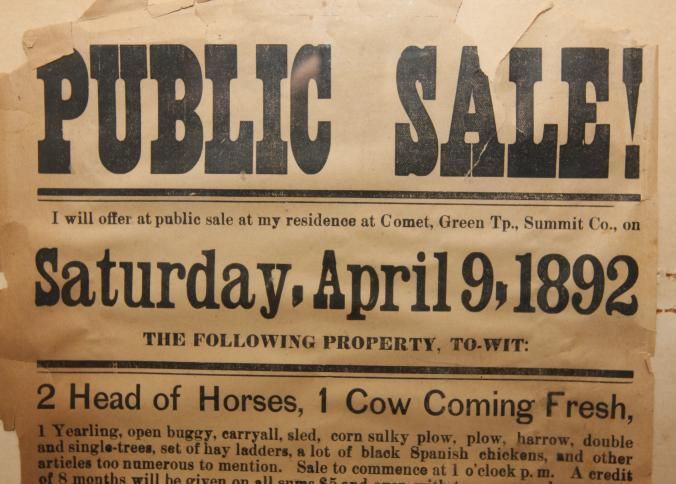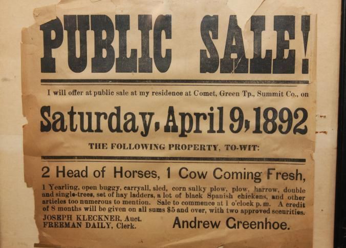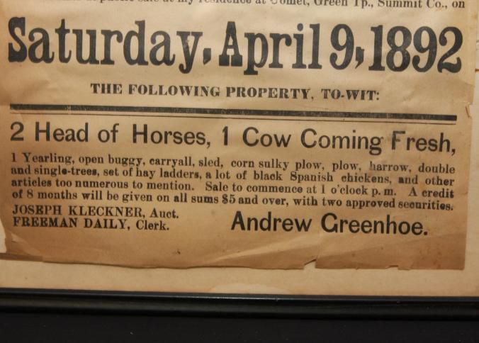 FR BROADSIDE, 1892, COMET, GREET TP. SUMMIT CO. LIVESTOCK, EQUIPMENT. JOSEPH KLECKNER, AUCTIONEER. 14 3/4" X 11 3/4"Created By
