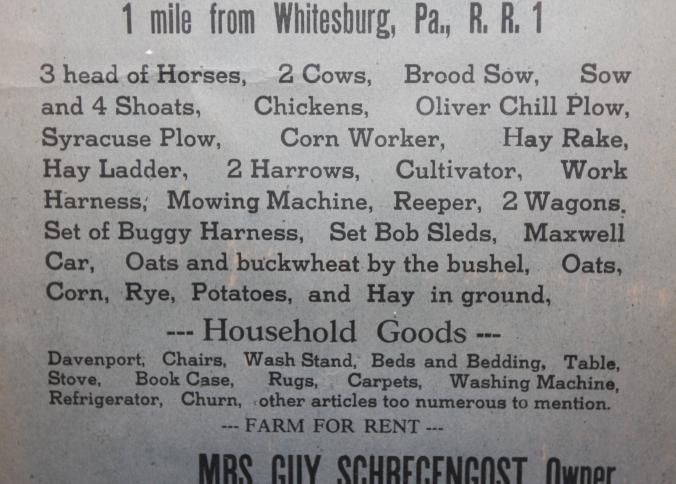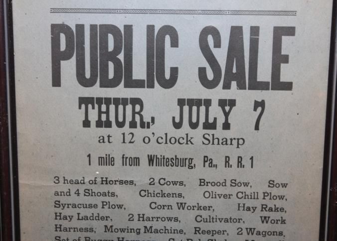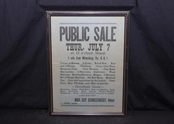 FR BROADSIDE, FARM, LIVESTOCK, PA. J.L. STUTCHELL, AUCTIONEER. NO DATE. 12" X 15"