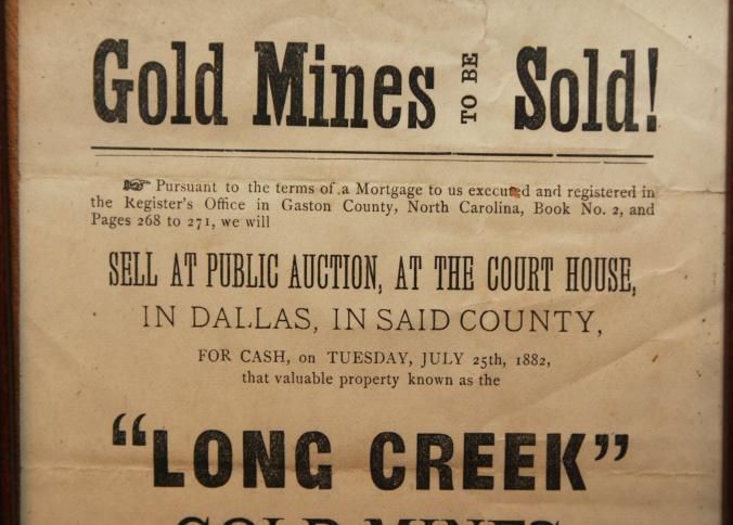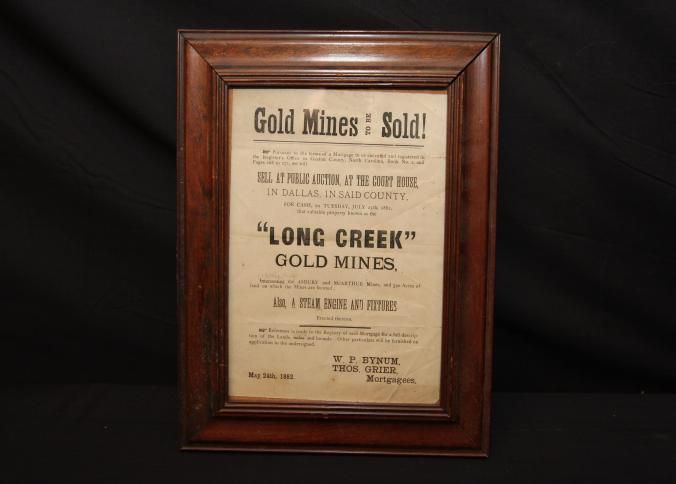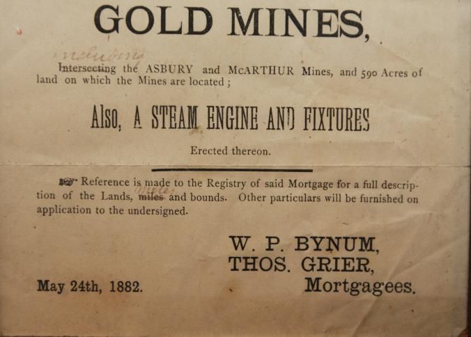 FR BROADSIDE, 1882, GOLD MINES, NC. LONG CREEK GOLD MINES, ASLO A STEAM ENGINE AND FIXTURES. W.P BYNUM, THOS. GRIER, MORTGAGEES. 9" X 11"Created By