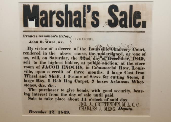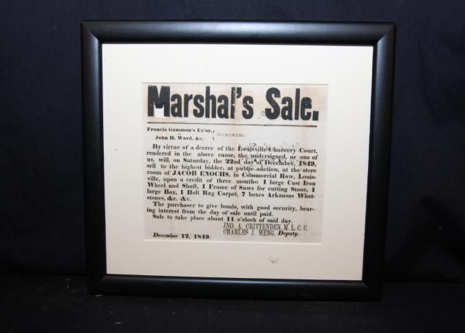 FR BROADSIDE, 1849, MARSHAL'S SALE, LOUISVILLE CHANCERY COURT ORDERED SALE. 13 1/2" X 11 1/2"
