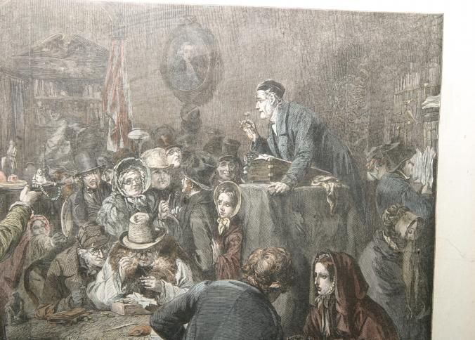 FR COLOR PRINT, 1862, FROM THE ILLUSTRATED LONDON NEWS. "THE INTERNATIONAL EXHIBITION: THE AUCTION-LAST DAY OF THE SALE BY G.B. O'NEIL" 18" X 15"Created By