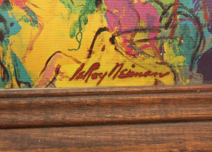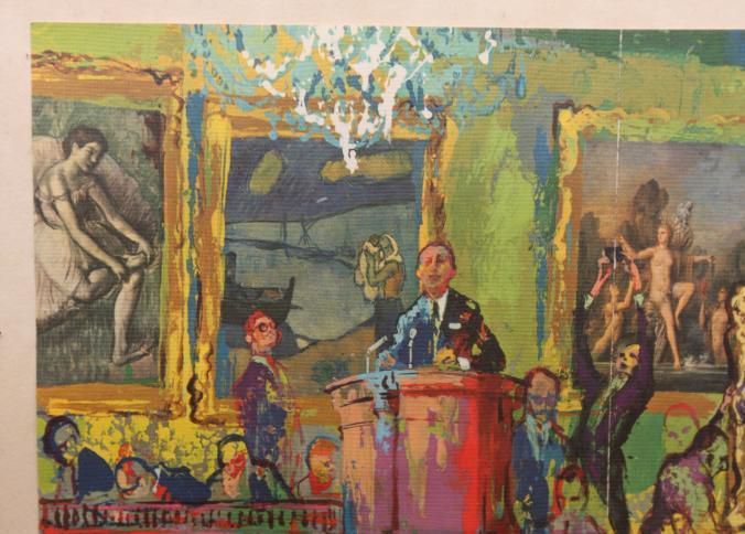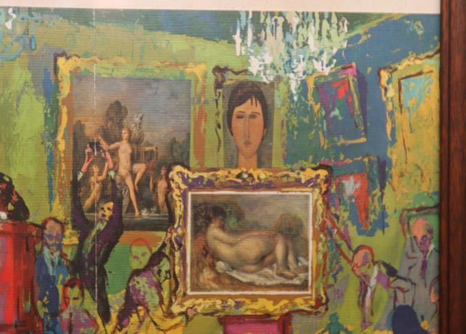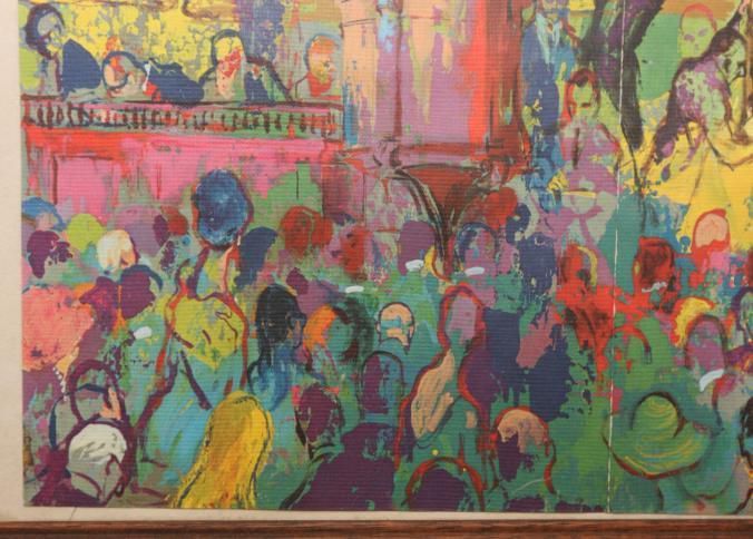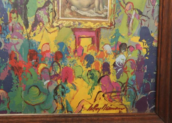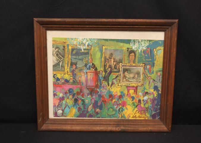 FR. CONTEMPORARY LEROY NEIMAN AUCTION SCENE PRINT. 10 1/2X15". UNTITLED. APPEARS TO BE A "PICTURE SALE" AT SOTHEBY'S WITH AUCTIONEER IN THE "ROSTRUM", A PAINTING OF NUDE ON THE BLOCK, LARGE CROWD IN FOREGROUND.Created By