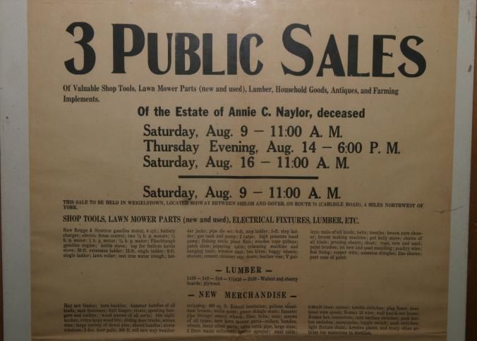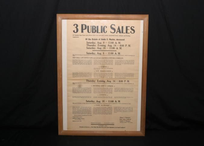 FR BROADSIDE, ESTATE. 3 PUBLIC SALES. TOOLS, HOUSEHOLD, LUMBER, ANTIQUES. VERNON R. LEREW, AUCTIONEER. 18 1/2" X 23 1/2"Created By