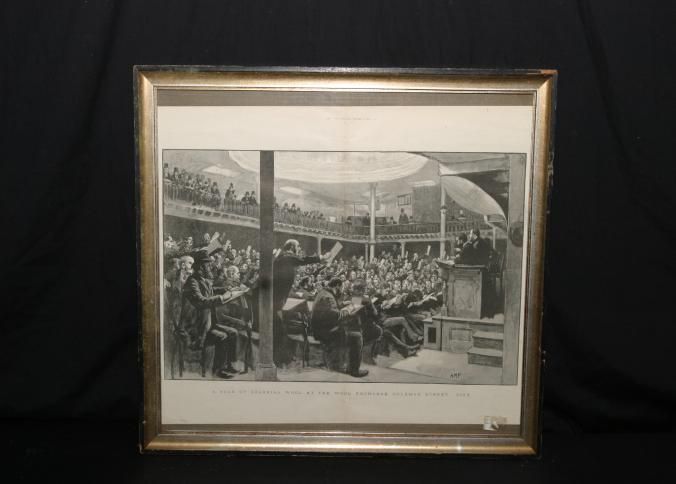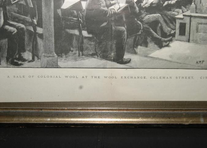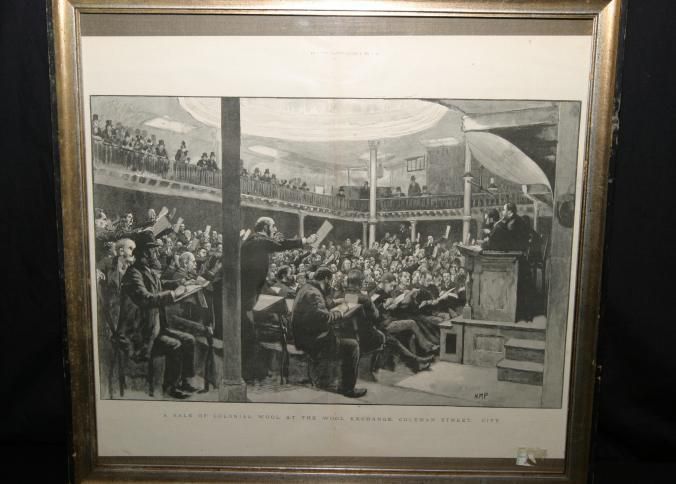 FR PRINT FROM THE GRAPHIC, 1889, "A SALE OF COLONIAL WOOL AT THE WOOL EXCHANGE, COLEMAN STREET, CITY" 21 1/2" X 19"Created By