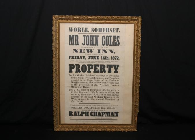FR BROADSIDE, REAL ESTATE, WORLE, SOMERSET, 1872. 18" X 22 1/2"