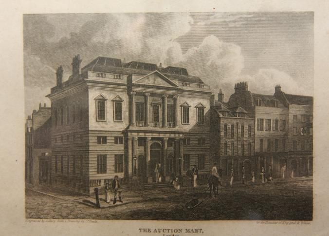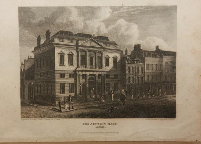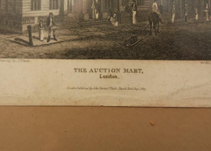 FR ENGRAVING, 1815, LONDON, ENGLAND. "THE AUCTION MART" 11 1/4" X 9 1/4"