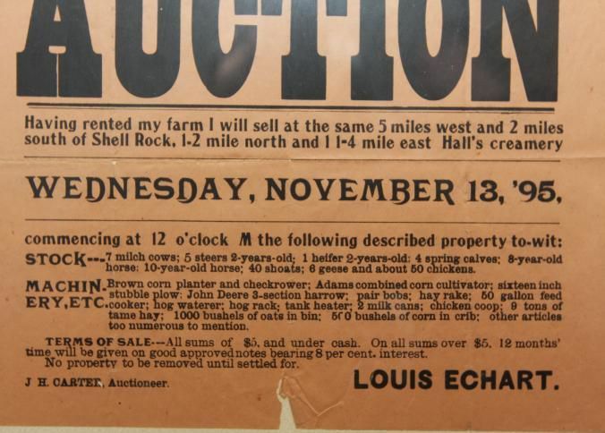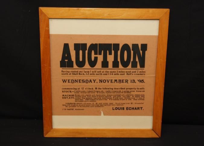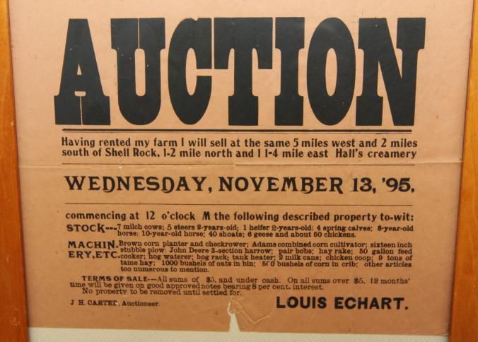 FR BROADSIDE, 1895, IA. LIVESTOCK, MACHINERY. J.H. CARTER, AUCTIONEER. 13 1/2" X 13 1/2"