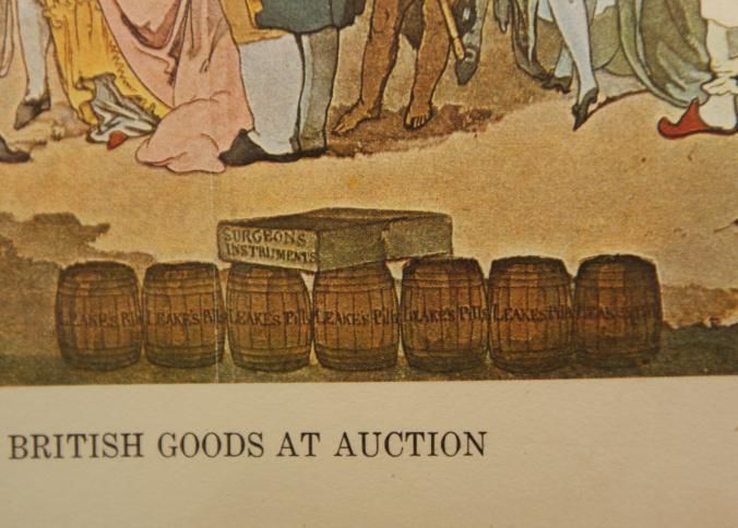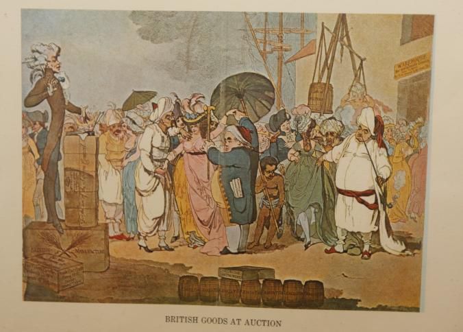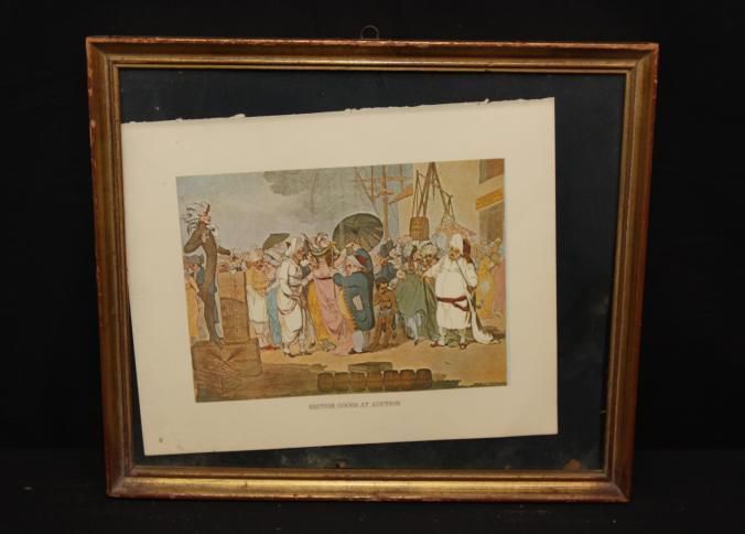 FR COLOR PRINT, "BRITISH GOODS AT AUCTION" POSSIBLY A SCENE IN INDIA WITH BRITISH AUCTIONEER. 15" X 12"Created By
