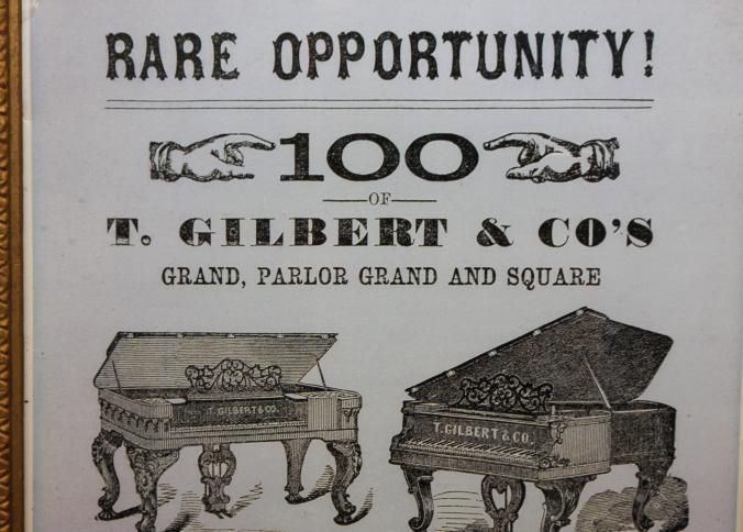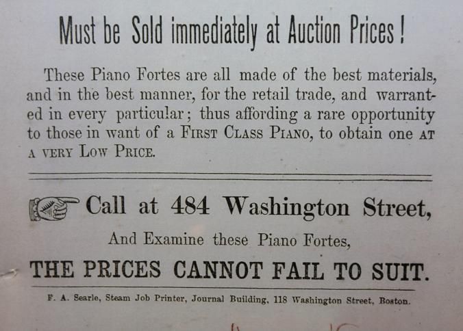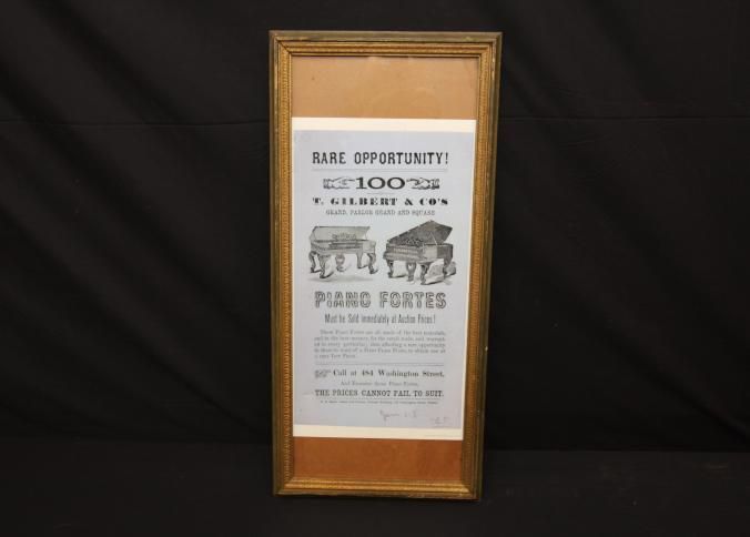 FR BROADSIDE, BOSTON, MA. RARE OPPORTUNITY! 100 OF T. GILBERT & CO'S GRAND, PARLOR GRAND AND SQUARE PIANO FORTES MUST BE SOLD IMMEDIATELY AT AUCTION PRICES. 12" X 24"Created By