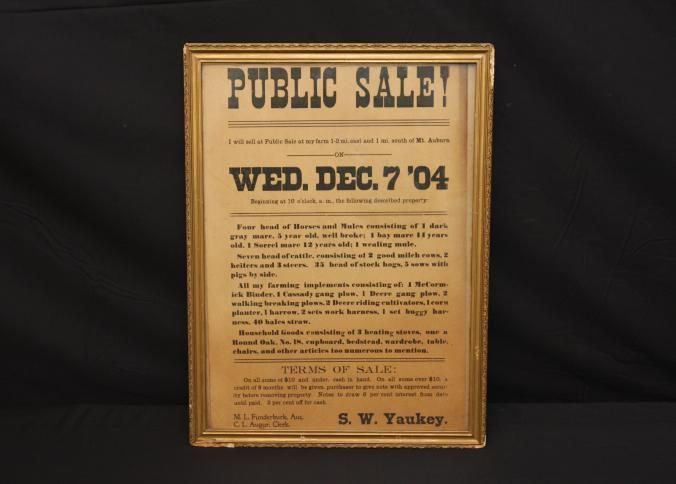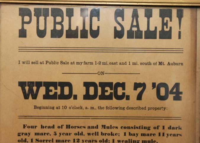 FR BROADSIDE, 1904, MT. AUBURN. PUBLIC SALE, LIVESTOCK, IMPLEMENTS, HOUSEHOLD. M.L. FUNDERBURK, AUCTIONEER. 13 3/4" X 17 1/4"Created By