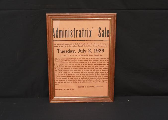 FR BROADSIDE, 1929, PA. ADMINISTRATIX' SALE. BERNICE C. COLWELL, ADMINISTRATRIX. 14 1/4" X 18 1/4"Created By