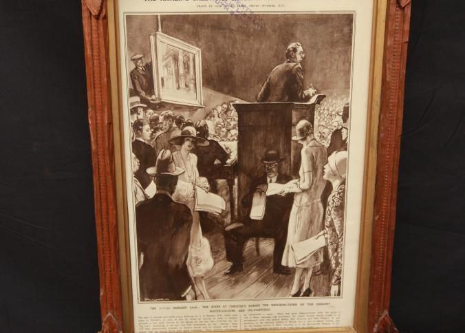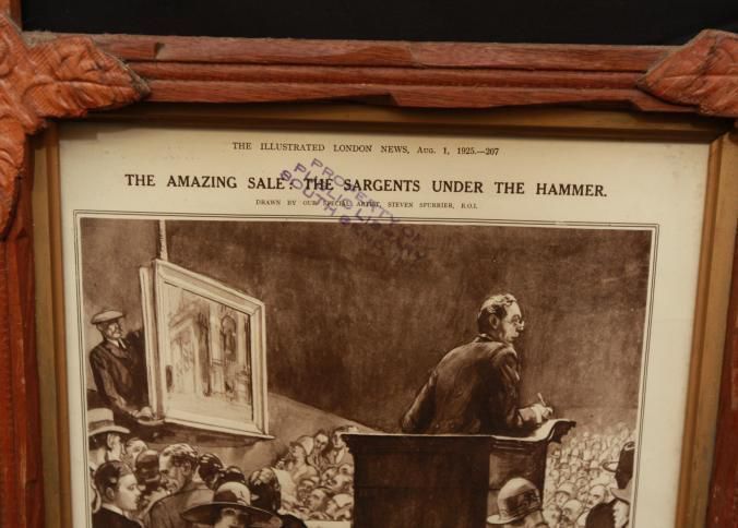 FR PRINT FROM THE ILLUSTRATED LONDON NEWS, 1925. "THE AMAZING SALE: THE SARGENTS UNDER THE HAMMER" THE SCENE AT CHRISTIE'S DURING THE KNOCKING - DOWN OF THE SARGENT WATER-COLOURS AND OIL PAINTINGS. 15" X 19"Created By