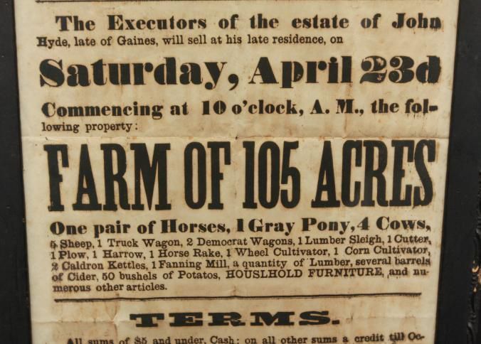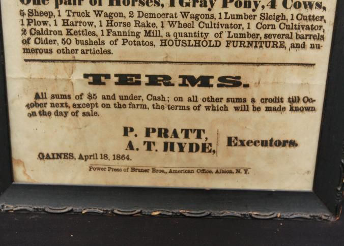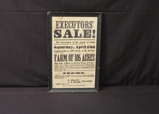 FR BROADSIDE, 1864, FARM, NY. EXECUTOR'S SALE! FARM OF 105 ACRES, LIVESTOCK, ETC. 13" X 19"