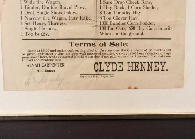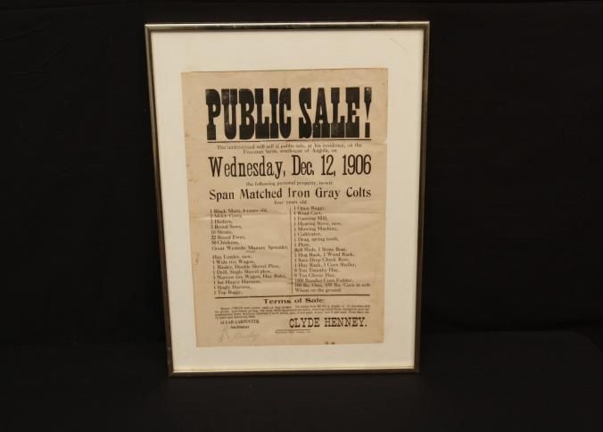 FR BROADSIDE, 1906, IN. PUBLIC SALE - LIVESTOCK, EQUIPMENT. ALVAH CARPENTER, AUCTIONEER. 14 1/4" X 18 1/4"Created By