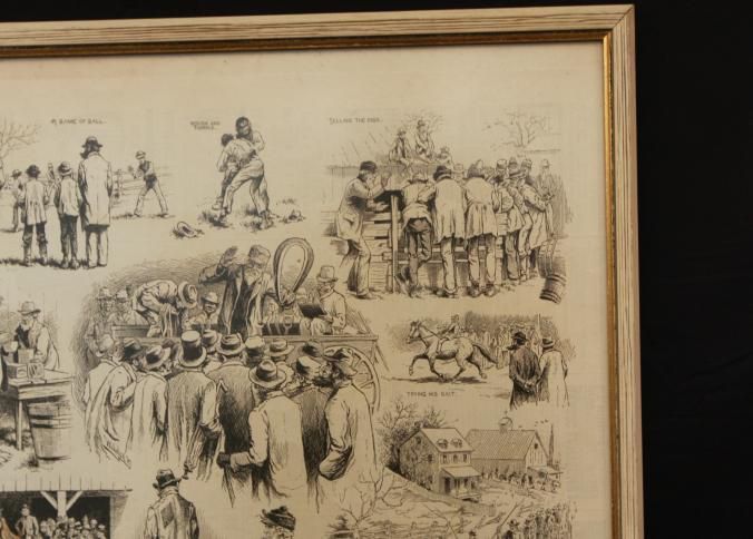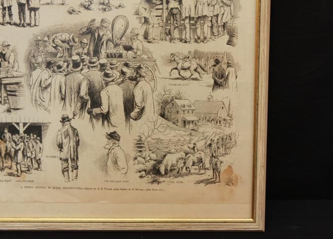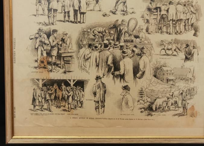 FR PRINT FROM HARPERS WEEKLY, 1887. "A SPRING AUCTION IN RURAL PA" 16" X 13"