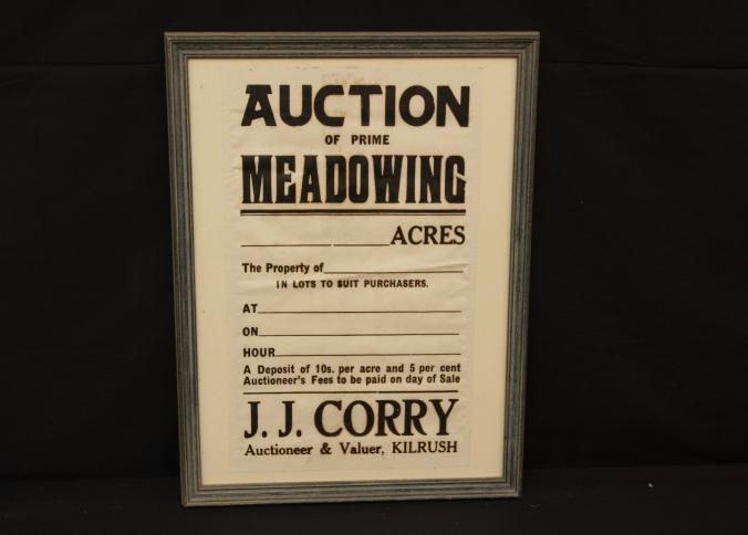 FR BROADSIDE, BLANK FORM "AUCTION OF PRIME MEADOWING" J.J. CORRY, AUCTIONEER, KILRUSH. 16" X 20"Created By