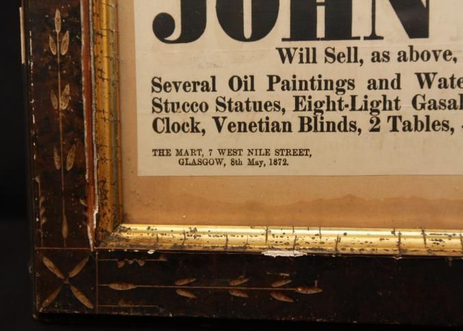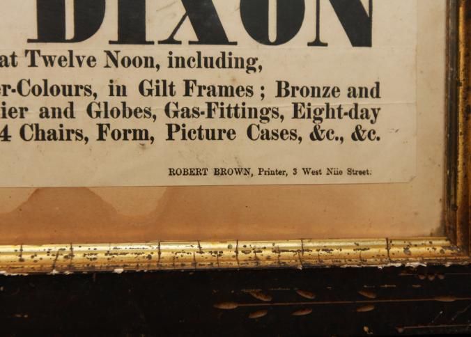 FR BROADSIDE, 1872, GLASGOW. PICTURES, CASALIER, TABLE, GAS FITTINGS, ETC. JOHN DIXON, AUCTIONEER. 14 1/2" X 12 1/2"Created By