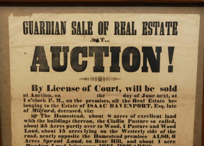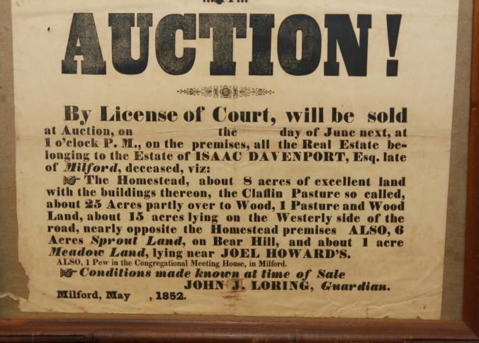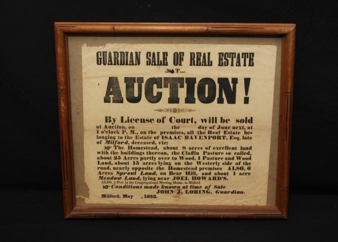 FR BROADSIDE, REAL ESTATE, 1852, MILFORD. GUARDIAN SALE OF REAL ESTATE AT AUCTION! BY LICENSE OF COURT. JOHN J. LORING, GUARDIAN. 15" X 12"Created By