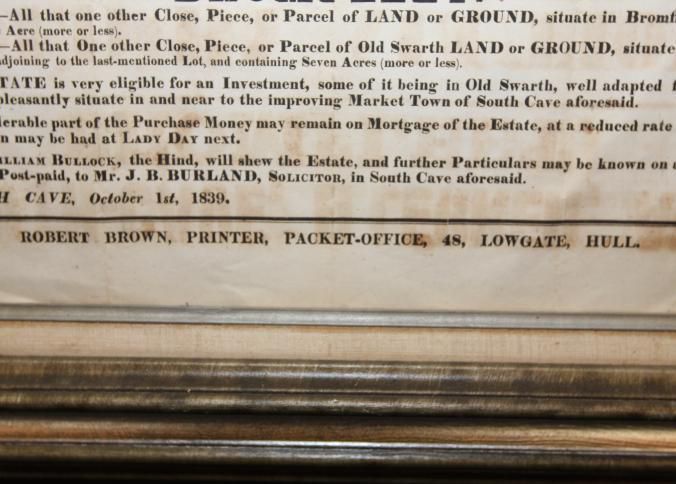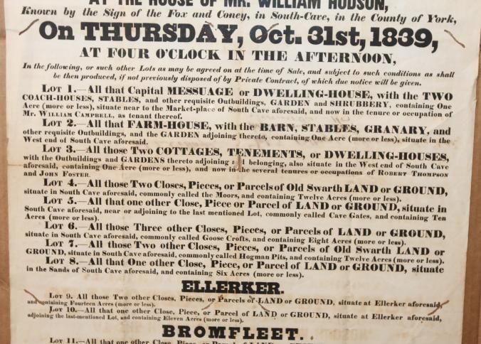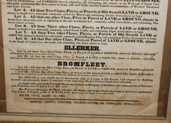 FR BROADSIDE, ESTATE, 1839, YORK COUNTY. SOUTH-CAVE, ELLERKER, AND BROMFLEET. 27" X 31"