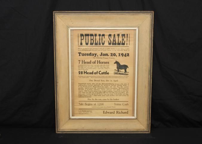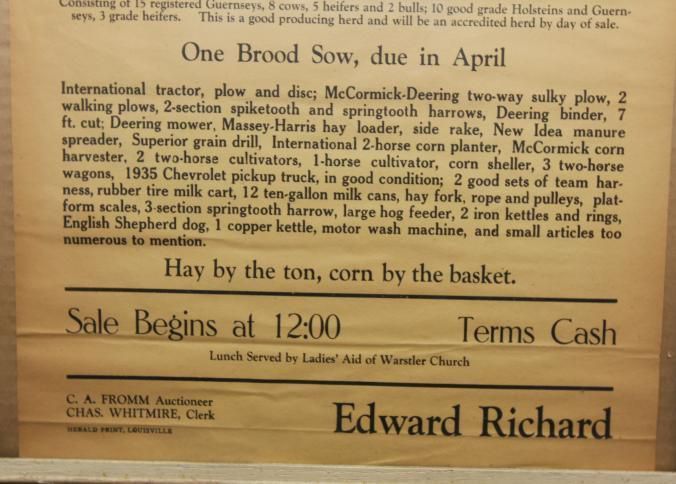 FR BROADSIDE, FARM, 1942, KY. HORSES, CATTLE, EQUIPMENT. C.A. FROMM, AUCTIONEER. 23" X 27"