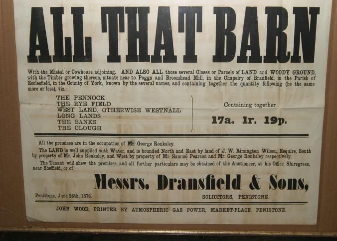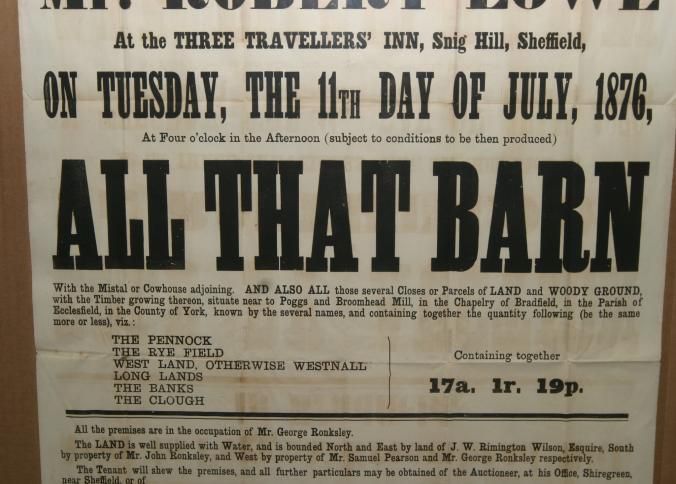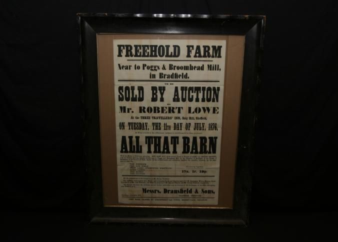FR BROADSIDE, 1876, FREEHOLD FARM, BRADFIELD. MR. ROBERT LOWE, AUCTIONEER. 32" X 38"