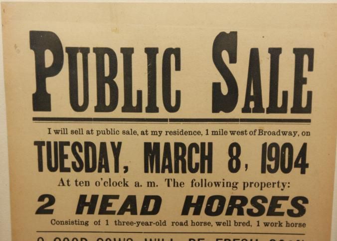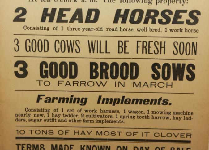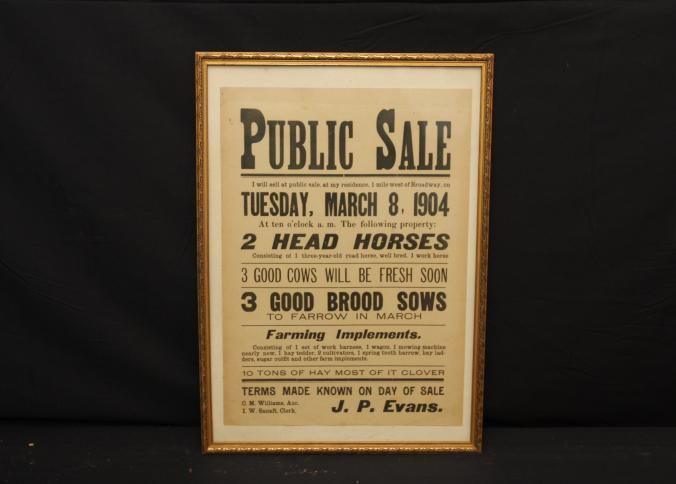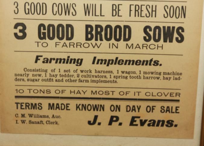 FR BROADSIDE, 1904, LIVESTOCK AND FARM IMPLEMENTS. C.M. WILLIAMS, AUCTIONEER. 12 3/4" X 16 3/4"