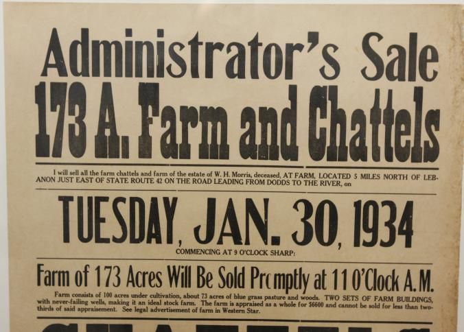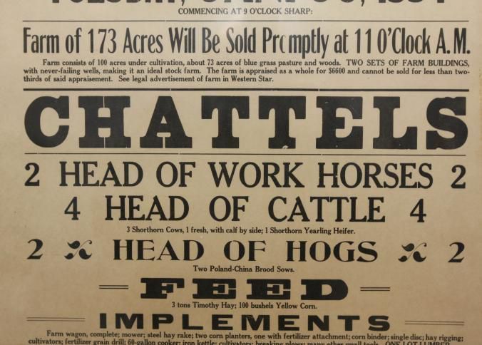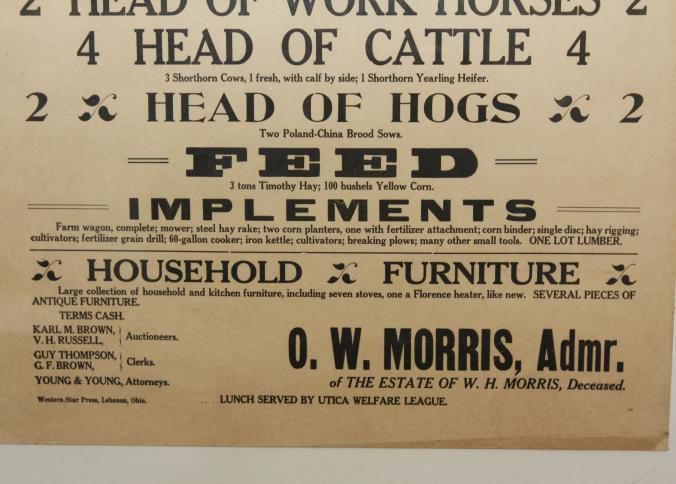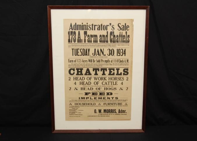 FR BROADSIDE, LIVESTOCK, 1934, OH. ADMINISTRATOR'S SALE 173 A. FARM AND CHATTELS. KARL M. BROWN & V.H. RUSSELL, AUCTIONEERS. 24" X 30"Created By