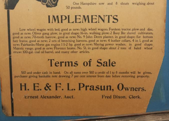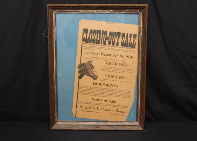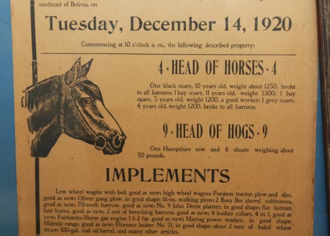 FR BROADSIDE, LIVESTOCK, 1920. HORSES, HOGS, IMPLEMENTS. CLOSING-OUT SALE. ERNEST ALEXANDER, AUCTIONEER. 18 1/2" X 22 1/2"Created By