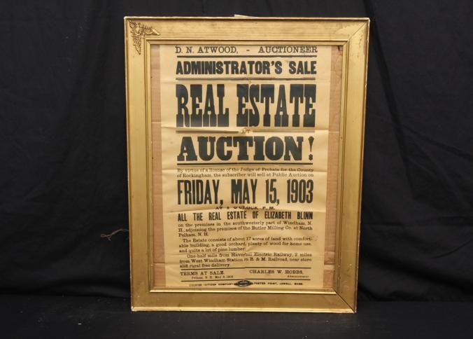 FR BROADSIDE, REAL ESTATE, 1903, MA. D.N. ATWOOD, AUCTIONEER. ADMINISTRATOR'S SALE, REAL ESTATE AT AUCTION! 19 3/4" X 23 3/4"Created By