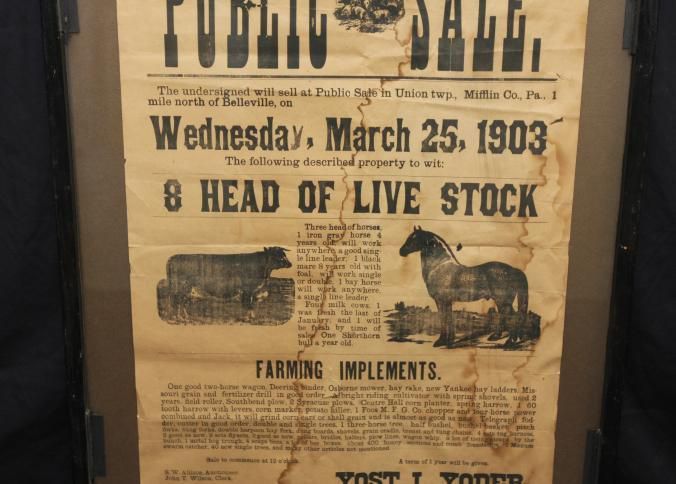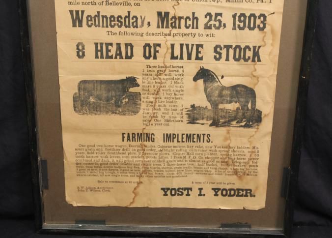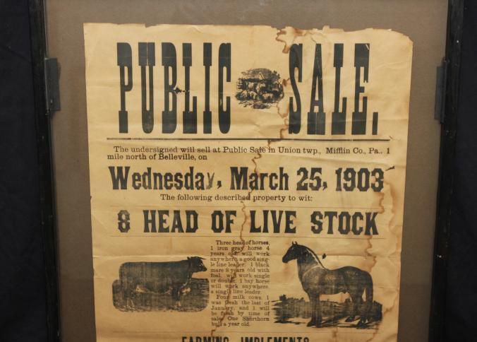 FR BROADSIDE, LIVESTOCK, 1903, PA. PUBLIC SALE, 8 HEAD OF LIVESTOCK. S.W. ALLISON, AUCTIONEER. 24 1/2" X 31"Created By
