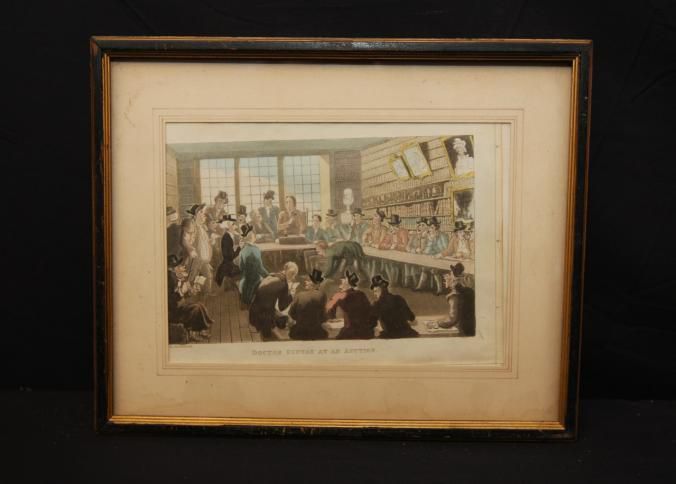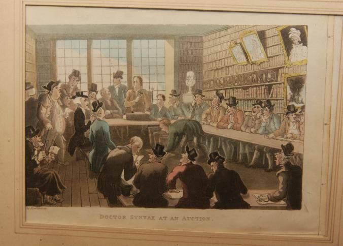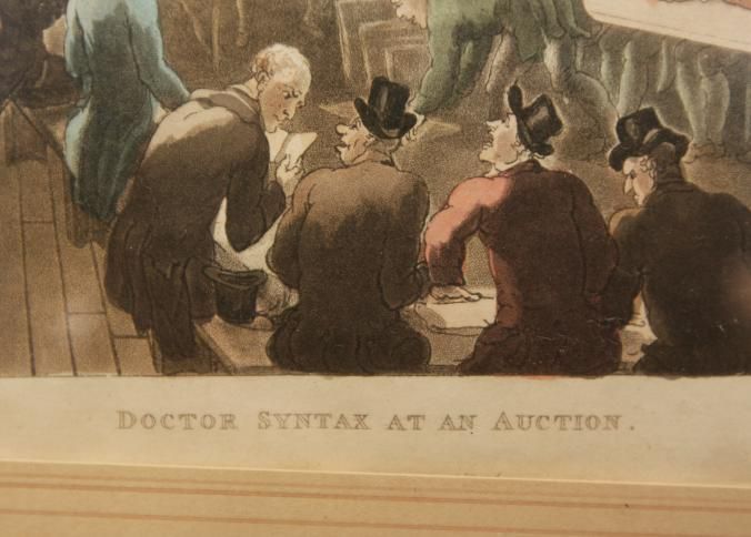 FR COLOR PRINT, "DOCTOR SYNTAX AT AN AUCTION" DRAWN BY ROWLANDSON. 11 1/2" X 8 1/2"
