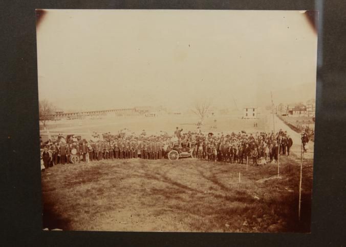FR BLACK & WHITE PHOTO, MARCHING BAND. 12 3/4" X 11"