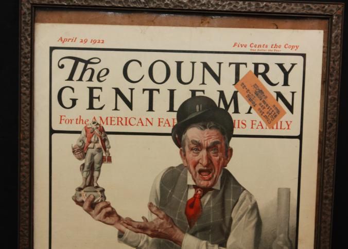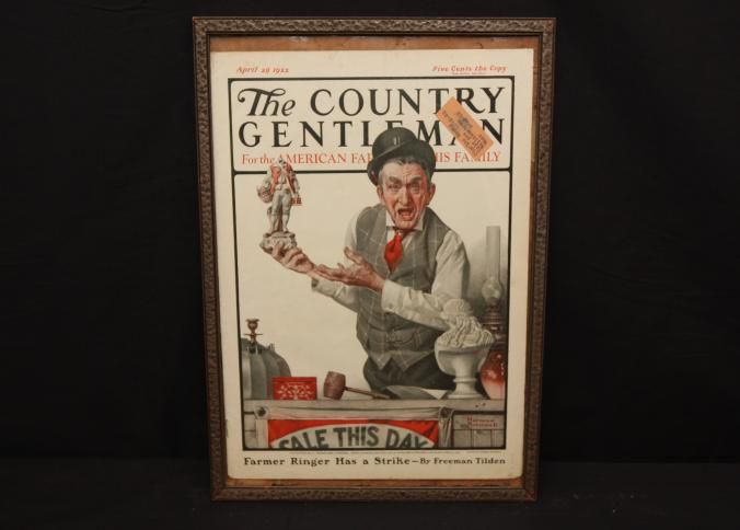FR MAGAZINE, APRIL 1922, NORMAN ROCKWELL PRINT OF AUCTIONEER. "THE COUNTRY GENTLEMAN" FARMER RINGER HAS A STRIKE - BY FREEMAN TILDEN. 11 3/4" X 16"Created By