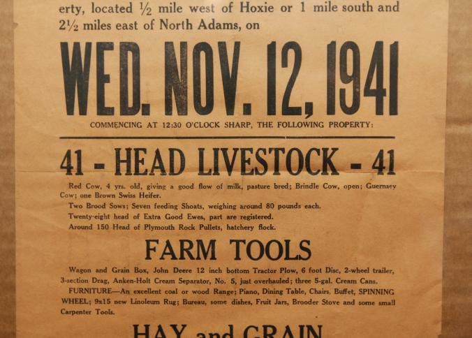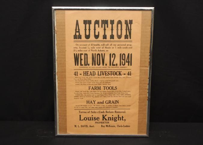 FR BROADSIDE, 1941, LIVESTOCK. AUCTION. 41 HEAD LIVESTOCK, FARM TOOLS, HAY AND GRAIN. M. L. DAVIS, AUCTIONEER. 11 1/4" X 14 1/4"Created By