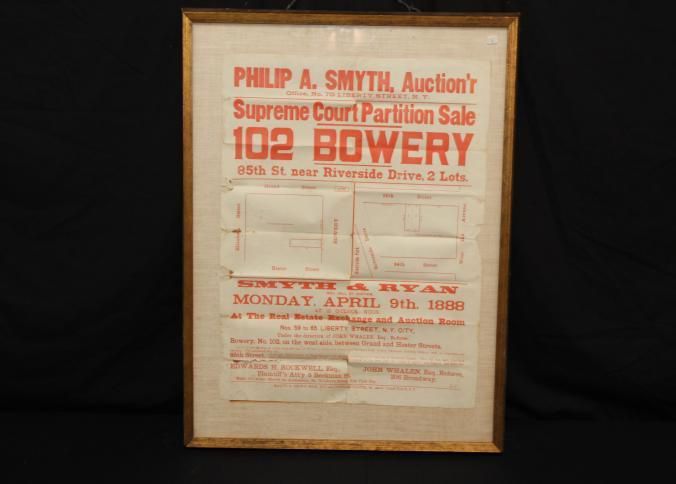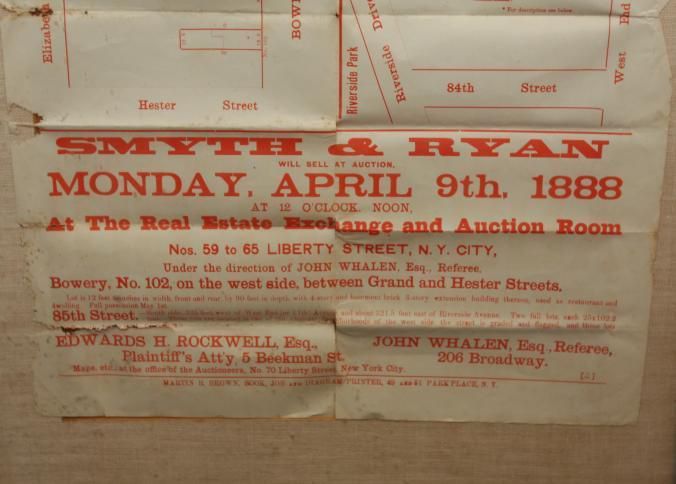 FR. 1888 NY REAL ESTATE AUCTION BROADSIDE. PHILIP A SMYTH AUCTIONEER. 18X24". REAL ESTATE EXCHANGE AND AUCTION ROOM 59 TO 65 LIBERTY ST.Created By
