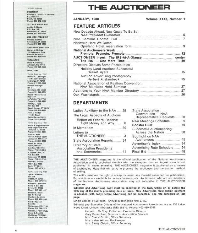 1980-1 (January) Auctioneer Issue (Volume 31, No. 1)Entry/Object ID