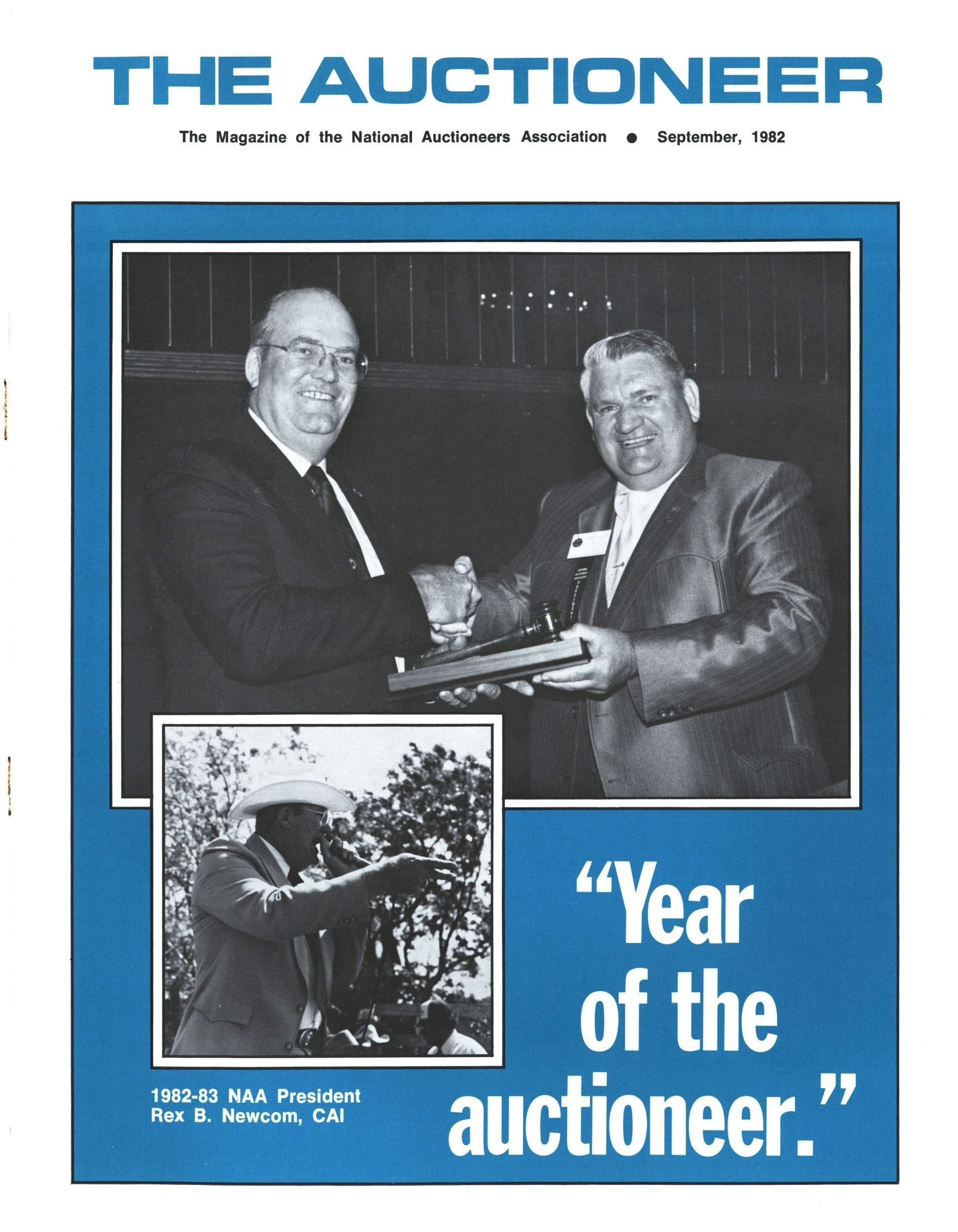 - (On the cover) "Year of the auctioneer" 1982-82 President Rex B Newcom, CAI (photos)