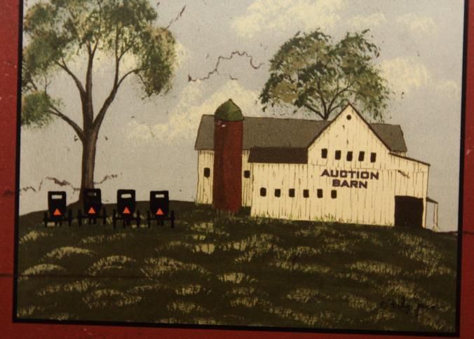 FR. CONTEMPORARY O/B PTG.: AMISH AUCTION BARN SCENE S/BILLY JACOB. 8X10". GREAT COLOR AND GRAPHICS.Type of Painting