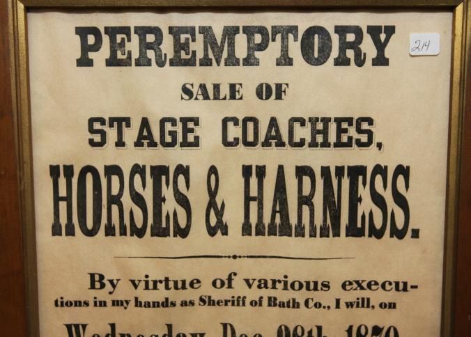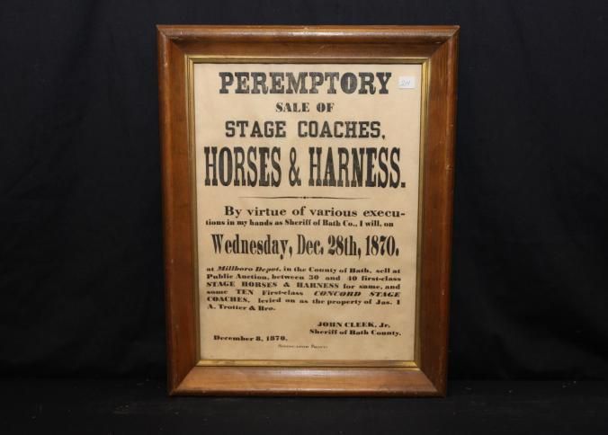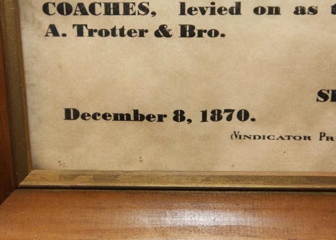 FR. (COPY) 1870 SHERIFF'S AUCTION BROADSIDE STAGE COACHES, HORSES & HARNESS. 10X13".