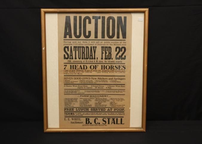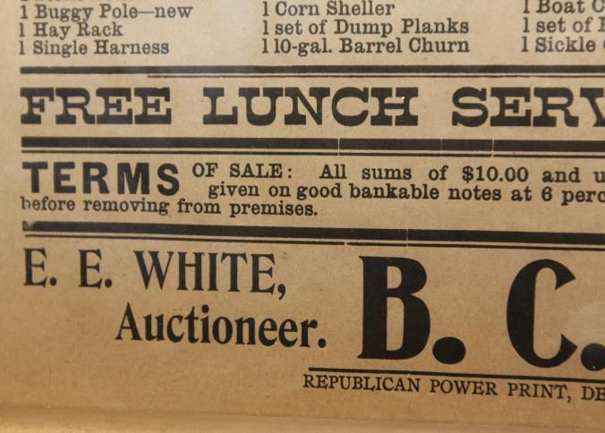 FR. 1908 WI (WISC) FARM AUCTION BROADSIDE. 11X15". AUCTIONEER: E.E. WHITE.