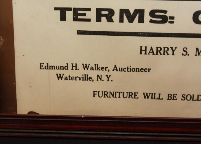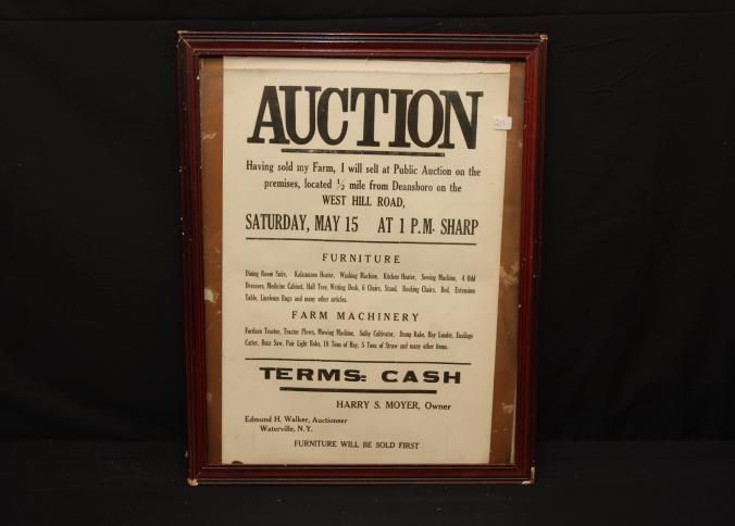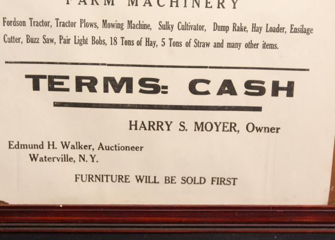 FR. NY FARM AUCTION BROADSIDE. 12X17". AUCTIONEER: EDMUND H. WALKER WATERVILLE, NY. "TERMS: CASH."Created By