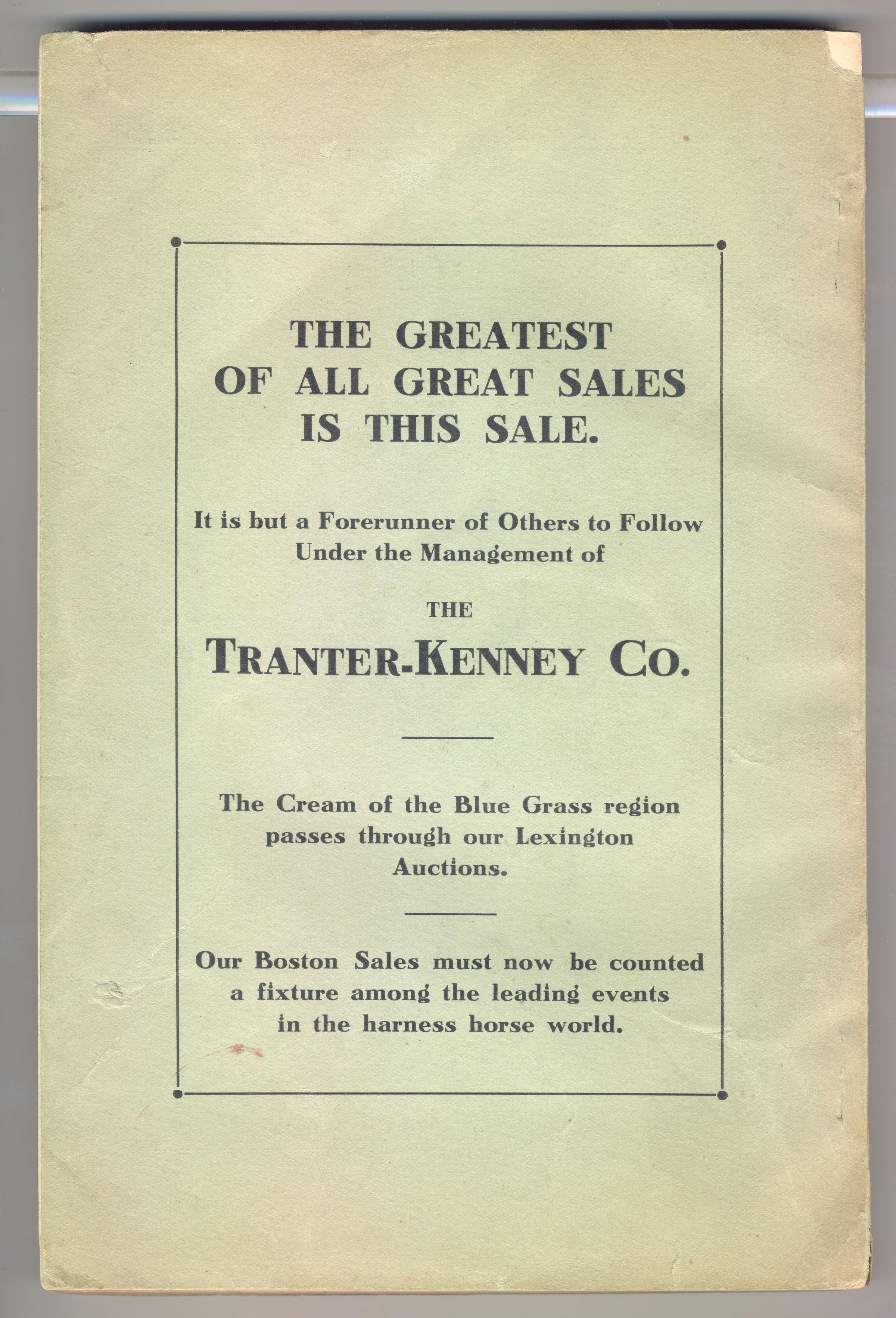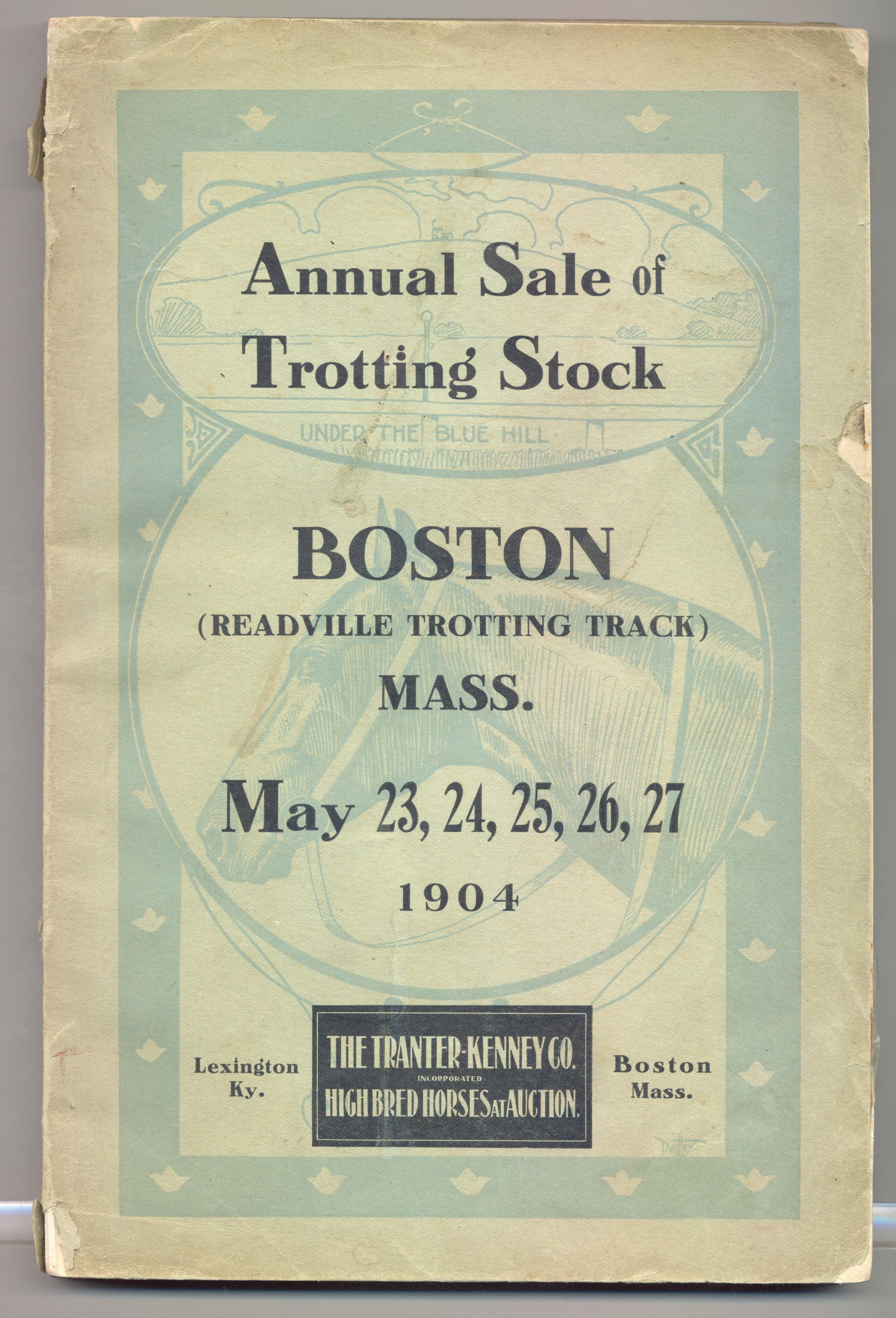 CAT, HORSE, 1904, MA. ANNUAL SPRING SALE OF TROTTING STOCK, BOSTON. THE TRANTER-KENNEY CO. PAGES NOT NUMBERED. 6" X 9" X 3/8"Created By