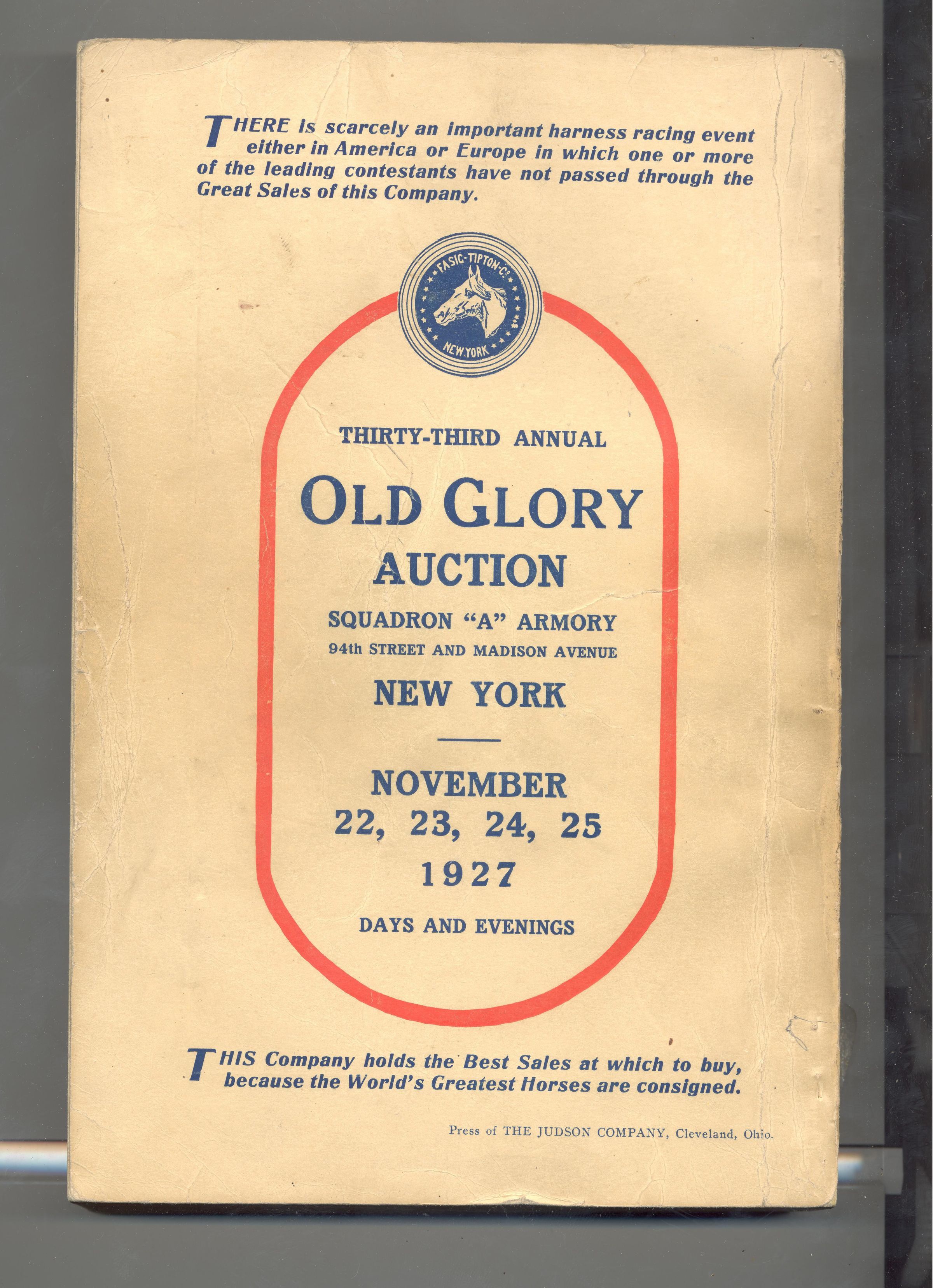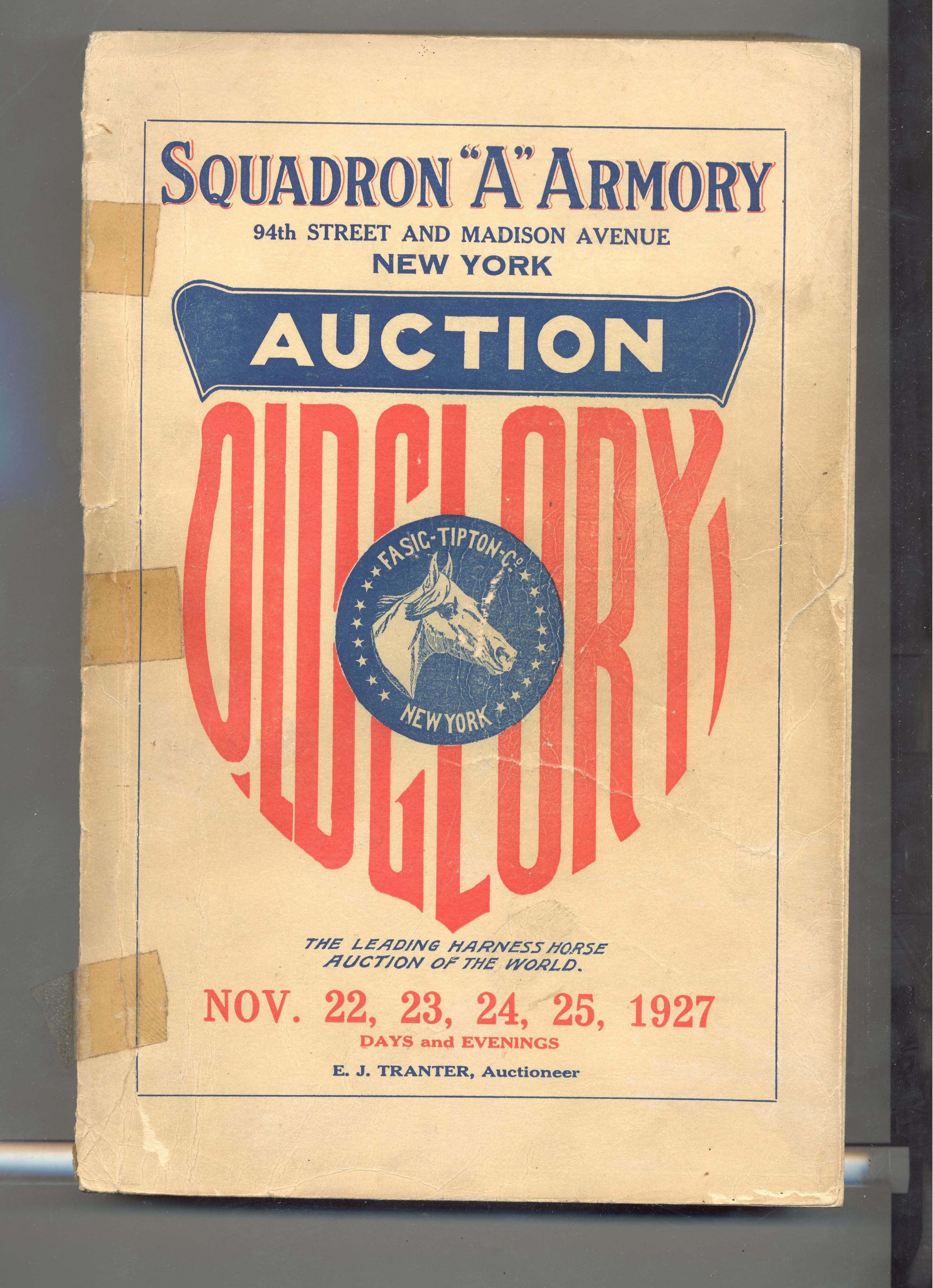 CAT, HORSE, 1927, NY. SQUADRON "A" ARMORY, FASIG-TIPTON CO, THE LEADING HARNESS HORSE AUCTION OF THE WORLD. TRANTER, AUCT. PRICES WRITTEN, 6" X 9" X 1"Created By