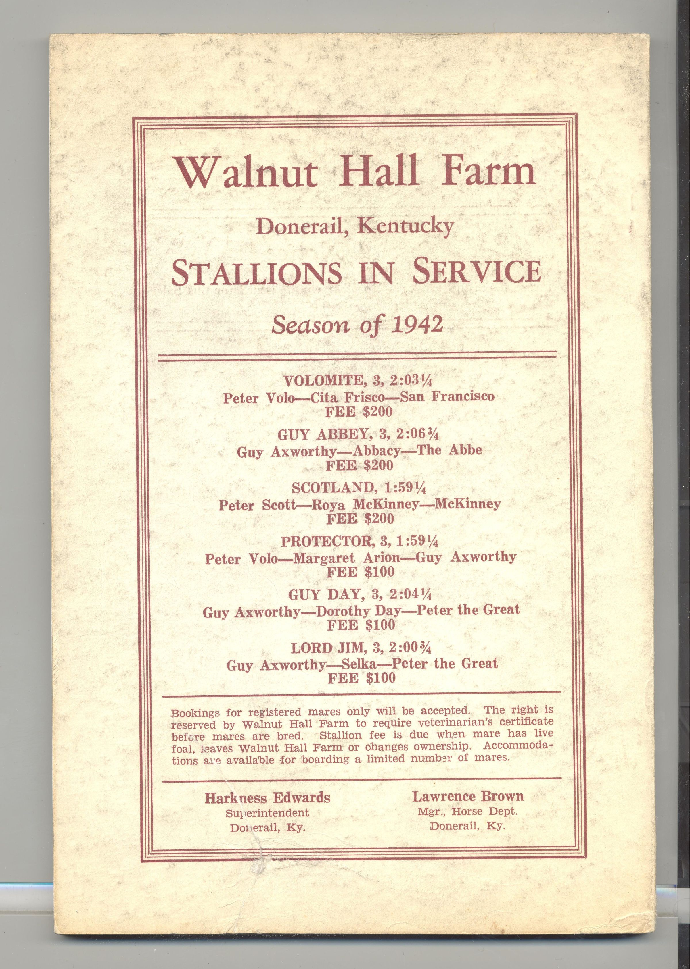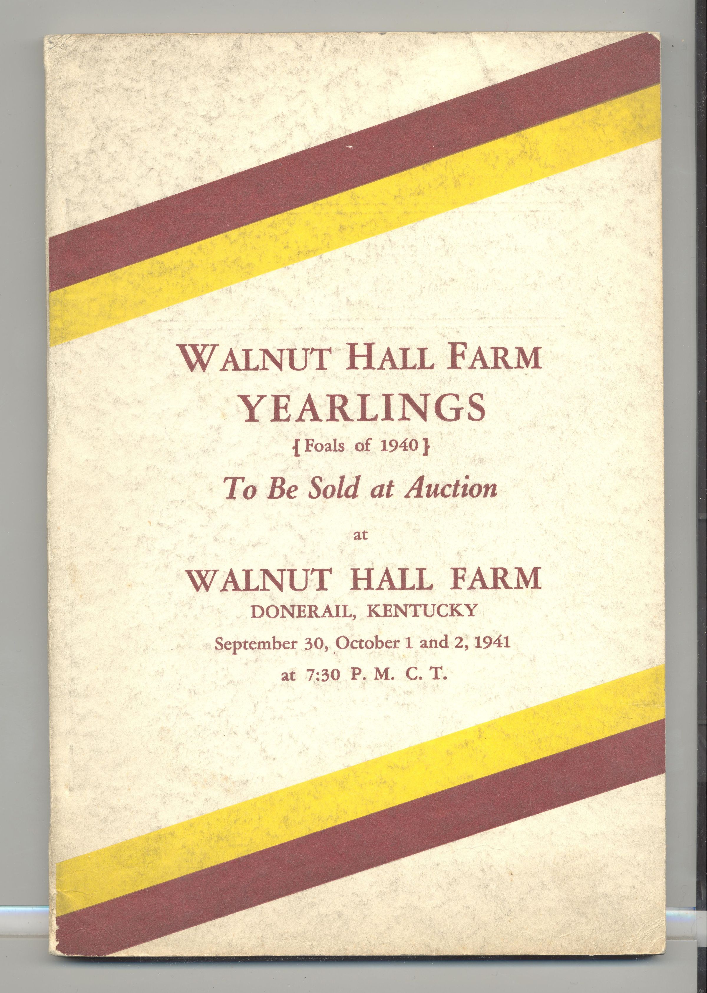CAT, HORSE, 1941, KY. WALNUT HALL FARM YEARLINGS, FOALS OF 1940. KENTUCKY SALE CO. PRICES WRITTEN, 110 PP. 6" X 9"Created By