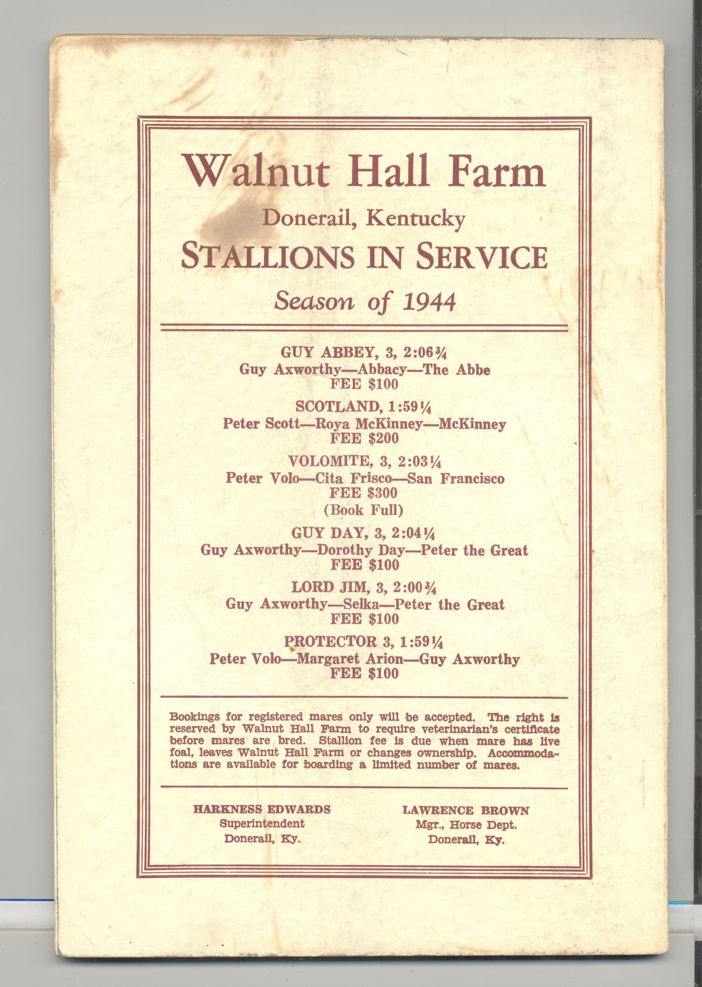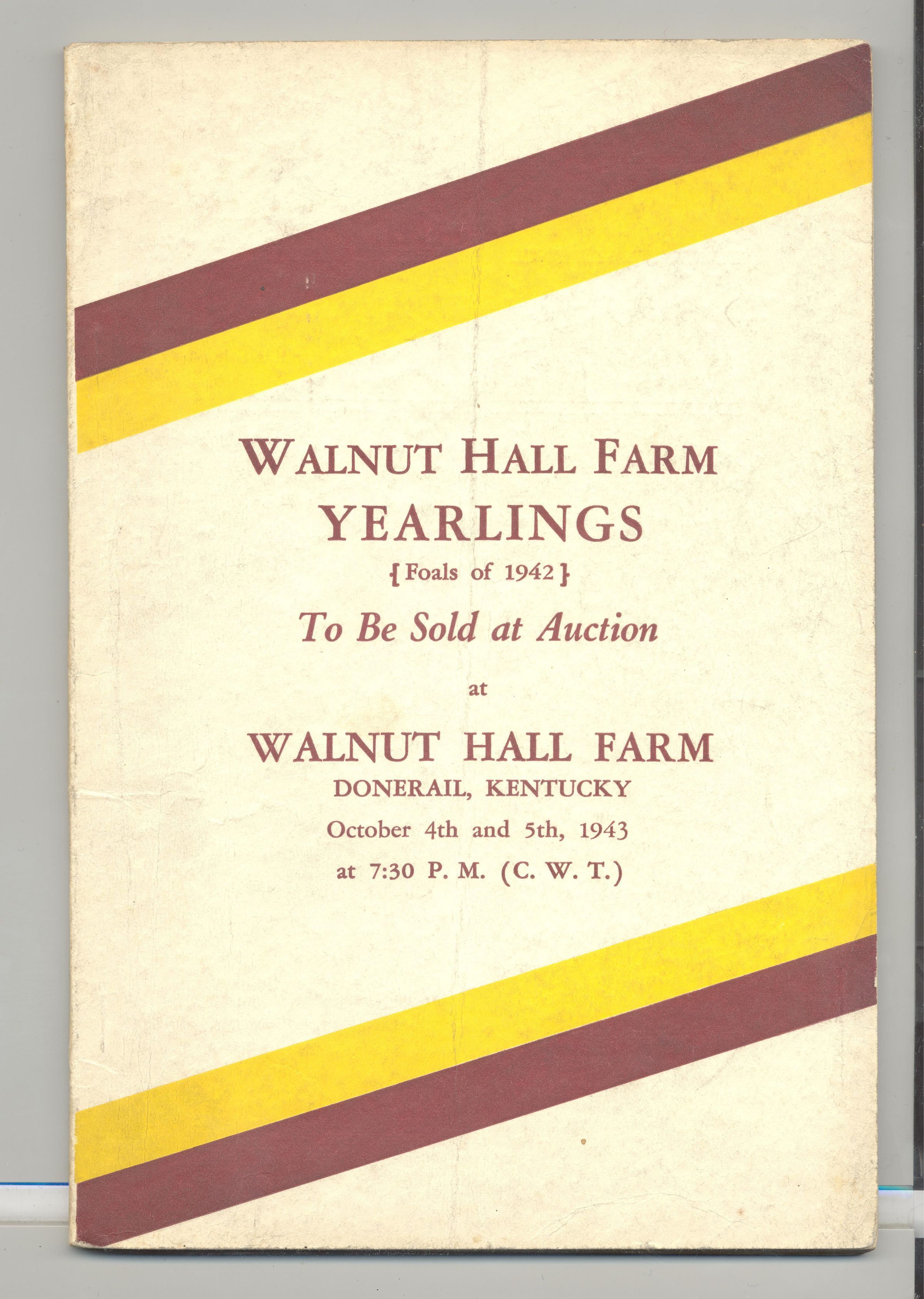 CAT, HORSE, 1943, KY. WALNUT HALL FARM YEARLINGS, FOALS OF 1942. KENTUCKY SALE CO. SOME PRICES WRITTEN, 95 PP. 6" X 9"Created By