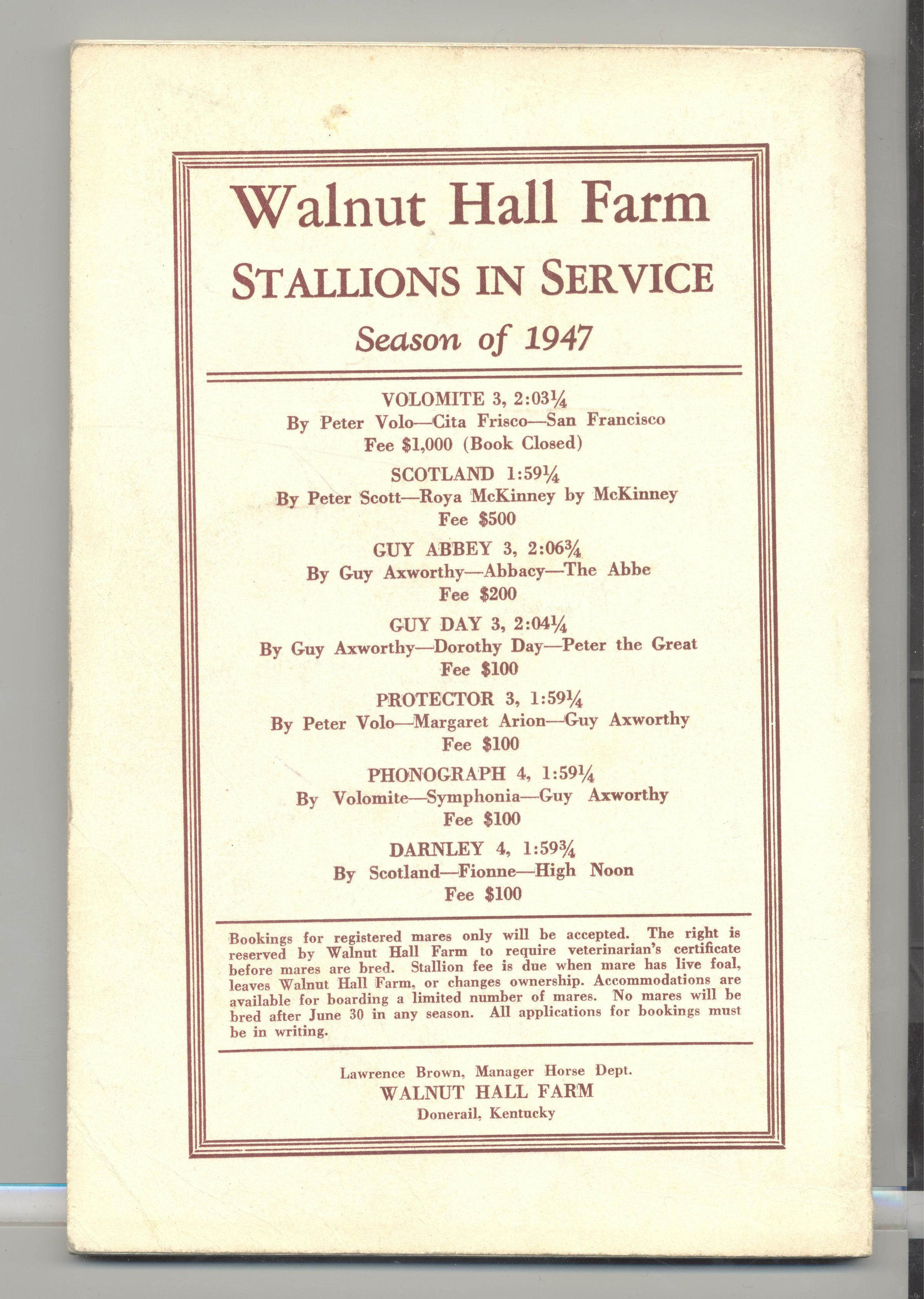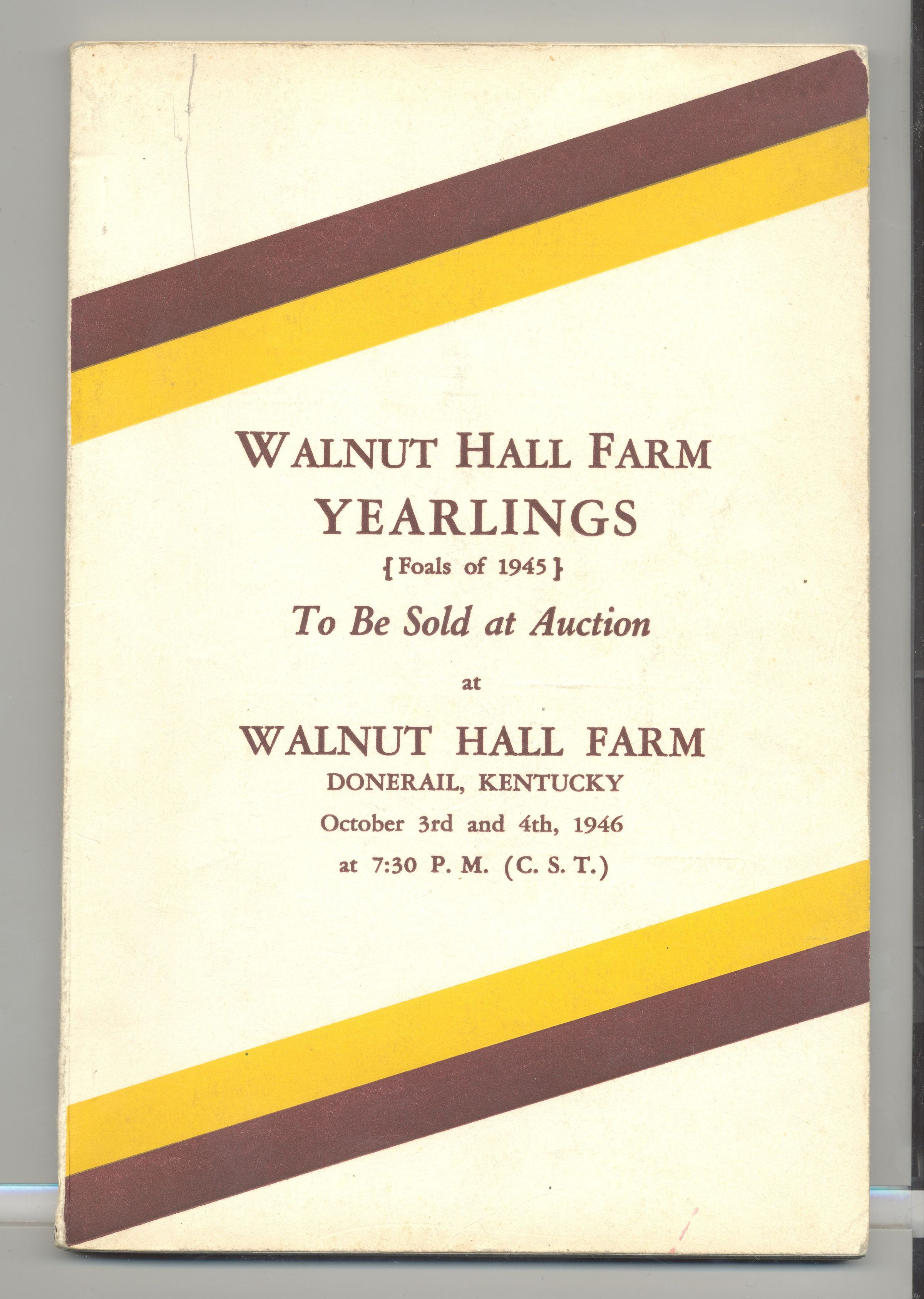 CAT, HORSE, 1946, KY. WALNUT HALL FARM YEARLINGS, FOALS OF 1945. KENTUCKY SALE CO. PRICES WRITTEN, 102 PP. 6" X 9"Created By