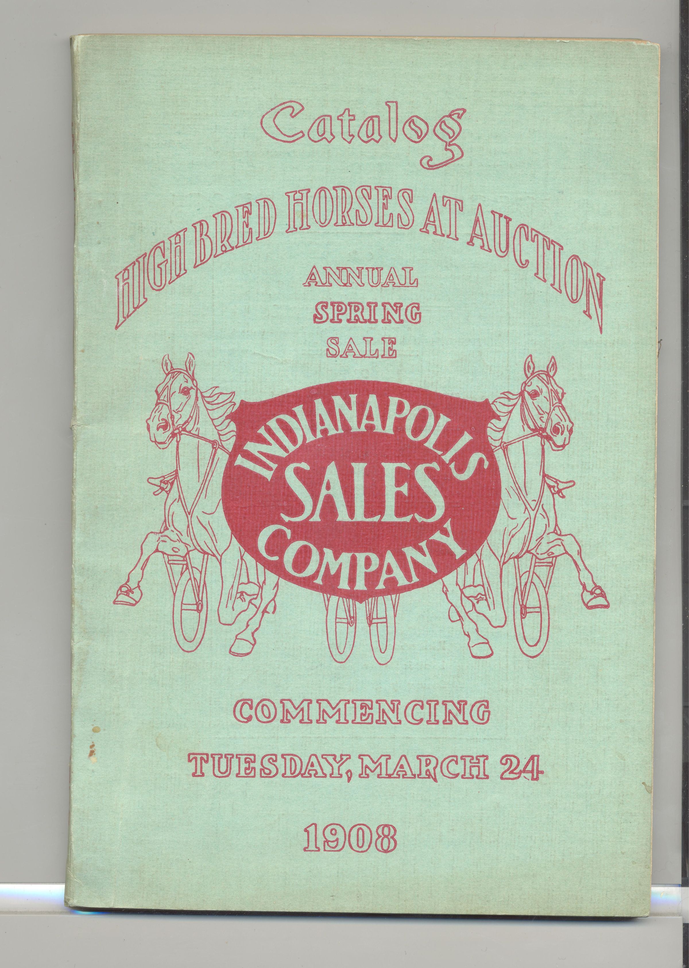 CAT, HORSE, 1908, IN. HIGH BRED HORSES AT AUCTION, ANNUAL SPRING SALE, INDIANAPOLIS SALES CO. 149 PP. 6" X 9"Created By